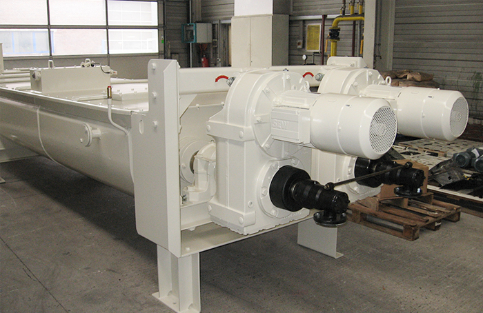 螺旋冷却器主要于动物和植物蛋白经干燥后的高温冷却,防止因温度过高而出现产品品质的降低和输送过程中因温度高而出现的烫伤事故等。内部螺旋可设计为单轴、双轴、四轴等,螺旋叶片为双叶片式,冷却水从双叶片中流过,吸收热量,从而将物料冷却,同时也将物料充分的混合,外部壳体也设计为夹套式,设备内部产生冷却,外部也产生冷却,冷却效率高。因所用冷却介质为冷水,不产生粉尘,减少物料的损失和废气的处理,该设备是目前比较好的冷却设备之一。主要有以下特点:
