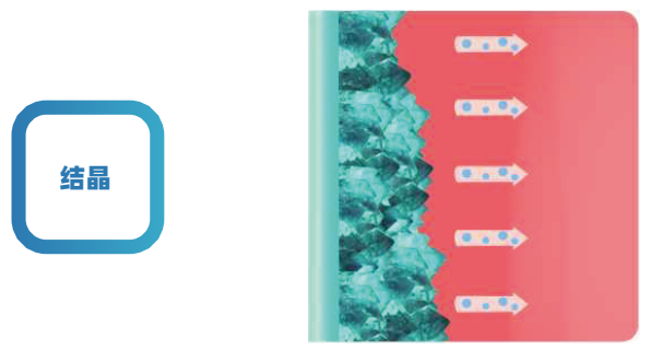 | 结晶过程是熔融液的温度在逐渐下降的过程中,某组分在熔融液中处于过饱和状态开始成核,并逐渐增长为晶体。 |