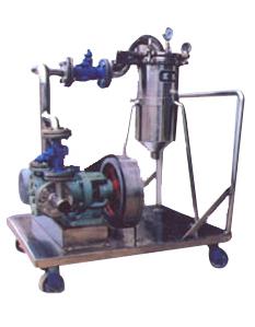 该种过滤机是一种压力式过滤装置,待滤液在泵作用下,滤液通过所需要细度等级的滤袋能获得合格的滤液。该机更换滤袋十分方便,过滤基本无物料消耗。该机有设计成单过滤机,双联过滤机,并可配套输送泵组装在移动式推车上。过滤机滤袋保护网均为不锈钢制作,其余部件有分碳钢和不锈钢制作两种,供过滤不同介质的用户选择。